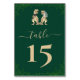 Funny Dinosaur Wedding dark green Table Number card Jurassic T-Rex Bride & Groom dino and watercolor eucalyptus greenery