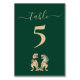 Funny Dinosaur Wedding Table Number card Jurassic T-Rex Bride & Groom dinos on Dark Green