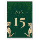 Funny Dinosaur Wedding Table Number card Jurassic T-Rex Bride & Groom dinos with eucalyptus greenery on Dark Green
