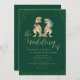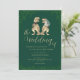Funny Dinosaur Wedding Invitation dark Green with eucalyptus foliage T-Rex Bride & Groom dinos with QR Code RSVP