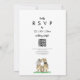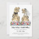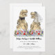 Delight you guests with this funny dinosaur themed wedding invitation with T-Rex bride and groom standing in a colourful wildflower meadow. Website RSVP details and QR code on the back. Easy to personalise with the bride and grooms names, wedding date and all the details. Fun T-Rex bride and groom illustrations with modern whimsical typography script. Unique original artwork by artist Catherine Sweetman
