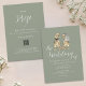 Set against a chic sage green background, the crisp white modern script and clean typography create a refined yet lighthearted look ideal for boho, rustic, or nature-inspired weddings.