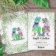 Thank your wedding guests for being roarsome dinosaur theme wedding thank you with fun colourful dinosaur bride and groom custom wedding thank you card. Fun psychedelic T-Rex bride and groom in purple pink green blue yellow and orange with Jurassic jungle foliage and modern whimsical typography with easy to use templates. Original dino artwork and foliage by artist Catherine Sweetman