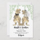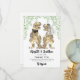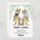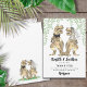 A funny dinosaur theme wedding Thank you card for wedding guests for being roarsome with this funny dinosaur bride and groom and watercolor eucalyptus foliage. Fun T-Rex bride and groom with botanical watercolor greenery and modern whimsical typography with easy to use templates. Original dino artwork and foliage by artist Catherine Sweetman