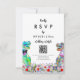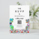 Bring fun and joy to your wedding day preparations with this colourful dinosaur themed wedding RSVP online QR Code website reply card with psychedelic T-Rex bride and groom in a colourful prehistoric wildflower meadow. Modern whimsical typography calligraphy with easy to personalise templates so you can add the wedding website QR code and browser web address and helpful guest instructions. Unique psychedelic funky Tyrannosaurus Rex bride and groom with watercolor summer floral art original artwork by artist Catherine Sweetman Ideal for the wedding day reception or rehearsal dinner. Matching wedding suite includes everything you will need on your fun wedding journey