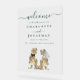 This customisable wedding welcome sign features stylish modern dark green typography and elegant script fonts, making it easy to personalise with the bride and groom’s names, the wedding date and your own personal welcome. Ideal for outdoor Jurassic destination weddings or summer ceremonies, this fun wedding welcome sign sets the tone for a prehistoric roaring good time celebrating the happy couple.