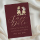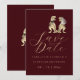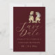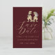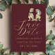 Designed for fun-loving couples, this unique card showcases charming watercolor illustrations set against a rich burgundy background. The playful artwork is beautifully balanced with modern typography and elegant script, creating a stylish yet lighthearted design that stands out from traditional wedding stationery.