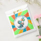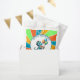 Adorable Personalised Boy's Birthday Party favours. Cute dinosaur theme in blue, orange and green. Cute cartoon dinosaurs holding balloons and birthday cake. Add name and age in the personalise area.