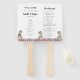 Delight your guests with this funny dinosaur themed wedding day program fan with funny T-Rex bride and groom in a colourful prehistoric wildflower meadow. Easy to customise with the bride and grooms names, the wedding date and all the wedding day ceremony details in modern typography script. Fun Tyrannosaurus Rex bride and groom dino and watercolor floral illustrations in blue pink purple yellow orange and green hues. Unique original dino artwork by artist Catherine Sweetman