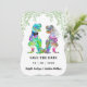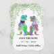 Delight your guests with this fun dinosaur wedding save the date invitation with colourful T-Rex bride and groom with watercolor woodland foliage. Easy to customise with the dino bride and grooms names and the wedding date. Colourful watercolor Tyrannosaurus Rex bride and groom illustrations with modern typography. Unique Jurassic dinosaur original artwork by artist Catherine Sweetman