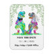 Delight you guests with this funny dinosaur themed wedding T Rex bride and groom save the date magnet. Easy to customise with the bride and grooms names and the wedding date. Colourful watercolor T Rex bride and groom illustrations with modern typography. Unique original artwork by artist Catherine Sweetman