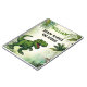 A jungle, rainforest as background. An image of a Tyrannosaurus Rex with the quote: Ready to rule the school. Green text.
