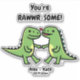 Dinosaur valentines features green dino couple in love with phrase You`re rawwr-some
