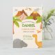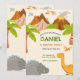 Let's party like a dino! Dinosaur birthday party invitations featuring volcanoes and palm trees.