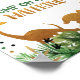 The design features gold dinosaur silhouettes with tropical watercolor leaves and gold foil leaf embellishments.