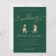 Funny Dinosaur Wedding Invitation T-Rex Bride & Groom dinos on Rich Dark Green with QR Code