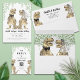 Delight your guests with this funny dinosaur themed wedding invitation with fun T-Rex bride and groom. Easy to customise with the bride and grooms names, the wedding date and all the wedding venue details in modern typography script. Fun T-Rex bride and groom illustrations in brown hues with jungle foliage in green hues. Unique original dino artwork by artist Catherine Sweetman
