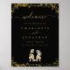 Dinosaur Theme Wedding Welcome Poster Sign black & Gold Foil with T-Rex Bride and Groom Jurassic Dino