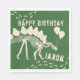 This Stegosaurus is ready to party! Dinosaur skeleton with balloons and foot prints personalised birthday napkins feature customisable name and background colour.