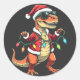 Dinosaur Wrapped with Christmas Lights Santa Hat Classic Round Sticker