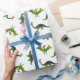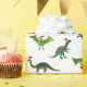 Toy dinosaurs in red santa hats. Christmas dinosaur wrapping paper. Funny dinosaur wrapping paper. Boys Christmas wrapping paper. Kids Christmas wrapping paper. Green dinosaur wrapping paper. Dinosaurs wearing Santa hats.