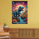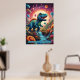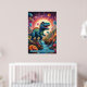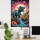 This dinosaur could belong to an imagined species from a cosmic realm, where flora and fauna thrive in vibrant, psychedelic ecosystems, blending prehistoric life with a space-age twist. Its demeanour exudes innocence and wonder, as though it’s exploring its fantastical universe for the first time.