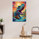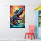 This dinosaur could belong to an imagined species from a cosmic realm, where flora and fauna thrive in vibrant, psychedelic ecosystems, blending prehistoric life with a space-age twist. Its demeanour exudes innocence and wonder, as though it’s exploring its fantastical universe for the first time.