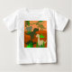 This baby t-shirt has a children’s design of dinosaurs in an atmosphere of plants and vines.