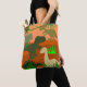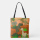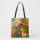 This tote bag has a novelty design of dinosaurs in an atmosphere of plants and vines.