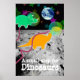 Cartoon Dinosaurs on the Moon Poster Print. Two cute little astronaut dinosaurs green Triceratops and orange Diplodocus in space on the moon with colour stars and a beautiful blue planet earth poster print with customisable text "A small step for Dinosaurs". This colourful dinosaur friends in space poster is fully customisable, add your text and images! A beautiful space travel cartoon animal gift for the big little dino fans!