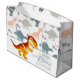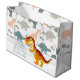 A sweet happy Birthday bag personalised gift bag for a person who loves dinosaurs. Click the "Customise it!" button to change the text size, text colour, font style and more!