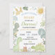 Our dinosaur stomp chomp roar 1st birthday invitation is the perfect way to invite friends and family to your party. The design features a greenery theme, with plenty of space for all the important details such as the date, time, and location of the party. Perfect for any age, gender and theme of the party, it is sure to impress your guests and get them excited for the celebration.