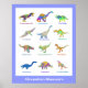 12 watercolor Dinosaurs in beautiful colourful psychedelic bright colours with their dino names, the perfect educational design for the girl who loves dinosaurs. Periwinkle and white boarder with personalised name plate. This fun palaeontology pattern includes all the prehistoric jurassic era favourites including T. rex or tyrannosaurus, velociraptors, brachiosaurus, brontosaurus, stegosaurus, the flying pterodactyl, triceratops, spinosaurus, ankylosaurus, plesiosaurs, parasaurolophus and pachycephalosaurus a fun spelling challenge for any child. Original artwork by artist Catherine Sweetman