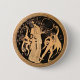 Secure your toga with style with this round button with a black and gold image of Dionysus, god of wine and wine making and ritual madness, and the satyrs. In mythology, a satyr is a wood-dwelling creature with the head and body of a man and the ears, horns, and legs of a goat. Satyrs were chraacterised as being fond of lechery and drunken merriment. See the entire Toga Buttons & Pins collection in the PARTY FAVORS section.
