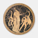 Round magnet with a black and gold image of Dionysus god of wine and wine making and ritual madness, and the satyrs. In mythology, a satyr is a wood-dwelling creature with the head and body of a man and the ears, horns, and legs of a goat. Satyrs were chraacterised as being fond of lechery and drunken merriment. See the entire Toga Magnet collection in the PARTY FAVORS section.