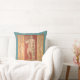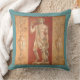 20” x 20” teal throw pillow with a torn-edged image of Dionysus, god of wine and wine making and ritual madness, posed on red holding a bowl of grapes between two decorative urns on gold. Teal back. See the entire Toga Pillow collection in the DECOR | Pillows section.