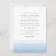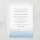 Elegant watercolor wedding invitations feature an ombre gradient dip dye effect at the bottom in pale sky blue. Personalise with your wedding details in dark charcoal grey block and script typography. Cards reverse to a subtle diamond lattice pattern in pale blue and white.