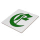 The letter E in Diploma typeface in a medium green on a white background with a slight shadow to give it a three dimensional effect.