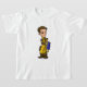 100% cotton so perfect for summer, It is a nicely designed t-shirt, the fabric is soft and the seams finished well, the body of the t shirt has no side seams. I bought a medium size for my two grandsons, aged 9 and 8 it will be slightly big on them but I would rather that than too small