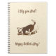 I Dig you Dad! Happy Father's Day! Dog dad Fathers Day notebook with fun image of a brown dog enthusiastically digging up dirt and bones at a beach. The sand speckles are a separate pattern image and can be removed. The background colour and the text can be changed or removed. This way, the notebook can be personalised with for instance a name or a non-Father's Day message.