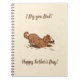 I Dig you Dad! Happy Father's Day! Dog dad Fathers Day notebook with fun image of a brown dog enthusiastically digging up dirt and bones at a beach. The sand speckles are a separate pattern image and can be removed. The background colour and the text can be changed or removed. This way, the notebook can be personalised with for instance a name or a non-Father's Day message.