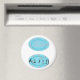 Painting of two blue oval platters, one dirty with food scraps and one clean, is printed on dishwasher magnets. Choose your size and shape.