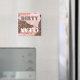 Let everyone know if the dishes are clean or dirty with this rose gold faux glitter camouflage dishwasher magnet. One side it says :"Clean" in White and the other "Dirty" in Brown on a background of camo pattern in shades of blush pink, rose gold, coral and brown. Designed by artist ©Susan Coffey.