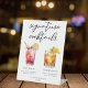 This chic signature cocktails pedestal sign features simple black typography above 2 cute drinks and their ingredients for your wedding bar. A Dirty Shirley Temple and Bourbon Smash add a cool flair to your bar menu. Complete with the couple's names and date for their reception.