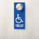 Disability handicapped wheelchair friendly toilet WC sign Door Hanger. Custom occupied / vacant lavatory sign for washroom, hotels, motel, bed and breakfast, hospitality business, conference building, home, office space, restaurant, pub, cafe, bar, company, school, dorm, university, studio, school, hospital, hostel, care home, bedroom, bathroom, meeting room, gas station, festival event, beach, park etc. Simple handicap signs for public wash room. Restroom symbol for disabled people. Double sided print. Also handy for doors without locks. Blue or custom colour.