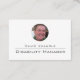 Disability Manager business card design with photograph of card holder. Bold and clear typographic design business cards for a Company or Business. Designed to convey your professionalism in your business. Add your head and shoulders photo or logo.
