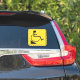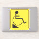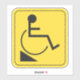 Yellow and black downward disabled wheelchair ramp sticker with wheelchair symbol with a person symbol. If you need more stickers like this please message me via Zazzle.