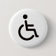 Button featuring a white and black disabled sign or handicap symbol featuring a black handicapped man sitting down in a wheelchair on a white background. This symbol is used for handicap parking, toilets for disabled and handicapped persons and more. Also available in other colours.
