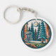 Disc Golf in the Woods Retro Vibe Art Key Ring