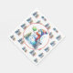 Disc golf themed Christmas party paper napkins.. Disc golf themed art. Cute watercolor cartoon snowman in Santa hat next to a disc golf basket in the snow next to a Christmas tree.